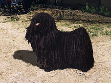 ПУЛИ (Puli, Hungarian Puli, Hungarian Water Dog), порода служебных собак. Другое название — венгерская водяная собака. Предполагают, что этой породе более тысячи лет, но известна она со средних веков. Возможно, в Венгрию она попала из Азии с мадьярскими кочевниками. Внешностью пули напоминает комондора, только гораздо меньшего размера. Главный признак пули — уникальная длинная шерсть, сбившаяся в шнуры, свисающие до земли. Темный цвет собак позволяет легко отличить их в стаде овец. У пули своеобразная пастушья тактика: она ведет стадо, прыгая овцам на спины или перепрыгивая через животных. Пули наиболее известна среди других венгерских пастушьих собак. Высота в холке 35-48, вес 9-18 кг. Тип конституции крепкий сухой. Костяк легкий. Голова небольшая, сухая. Морда округлая. Уши небольшие, висящие на хрящах, под длинной шерстью незаметны. Грудь широкая. Спина крепкая, прямая. Поясница немного выпуклая. Живот подобран. Хвост длинный, закинут на спину. Шерсть длинная, жесткая, в завитках, с мягким подшерстком, сбивается в шнуры сама по себе. Окрас: черный, ржаво-черный, черный с сединой, серый, различных оттенков. Подвижная, уравновешенная, смышленая собака. Хорошо справляется со своими пастушьими обязанностями, а также надежный сторож. Легко дрессируется. Признает одного хозяина. Шерсть необходимо держать в чистоте и тщательно перебирать шнуры вручную.